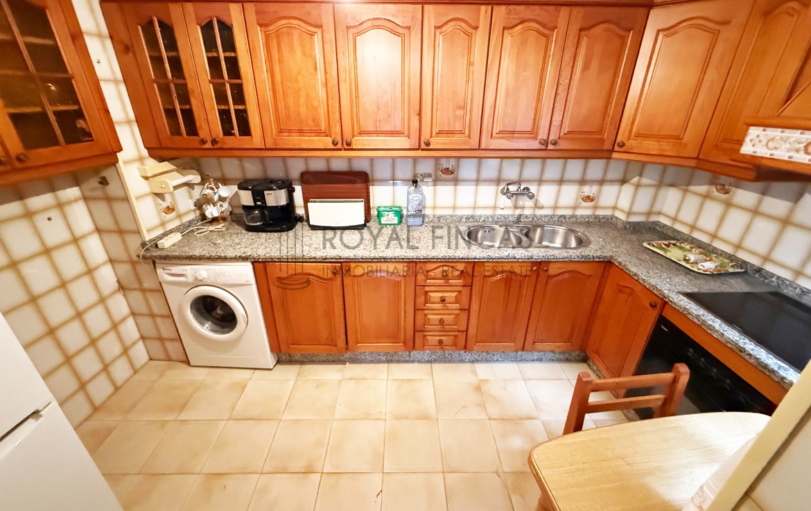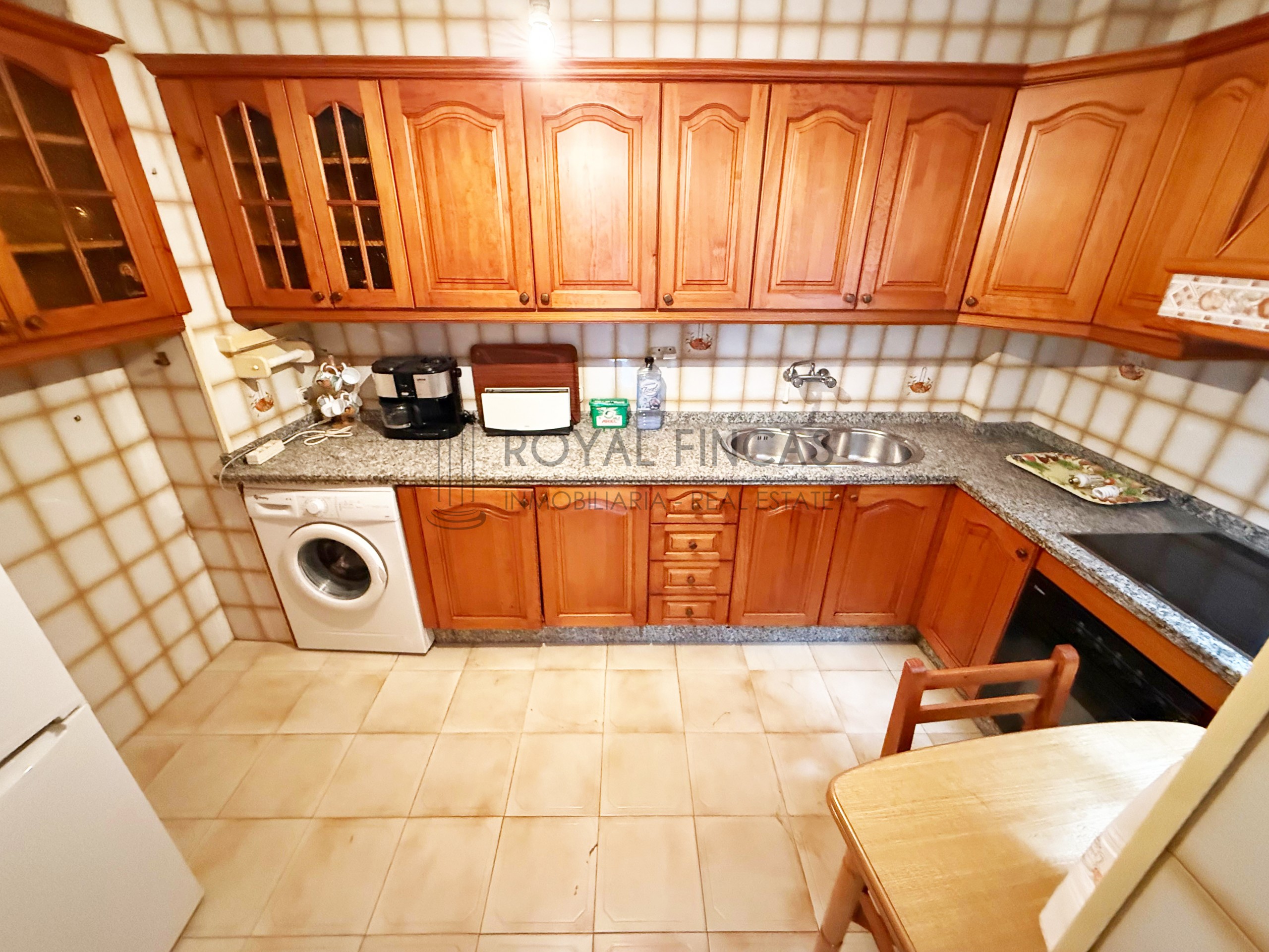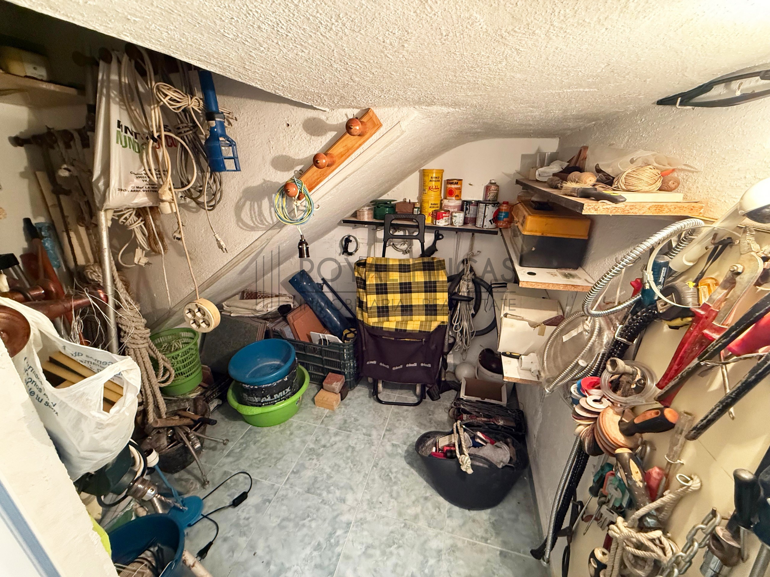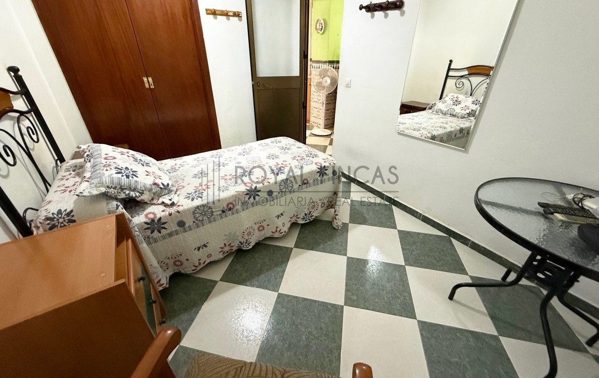 Planta principal: salón-comedor con aire acondicionado, un dormitorio en la misma planta (ideal para personas con movilidad reducida o como despacho), una cocina equipada con pequeño almacén empotrado y un baño completo.