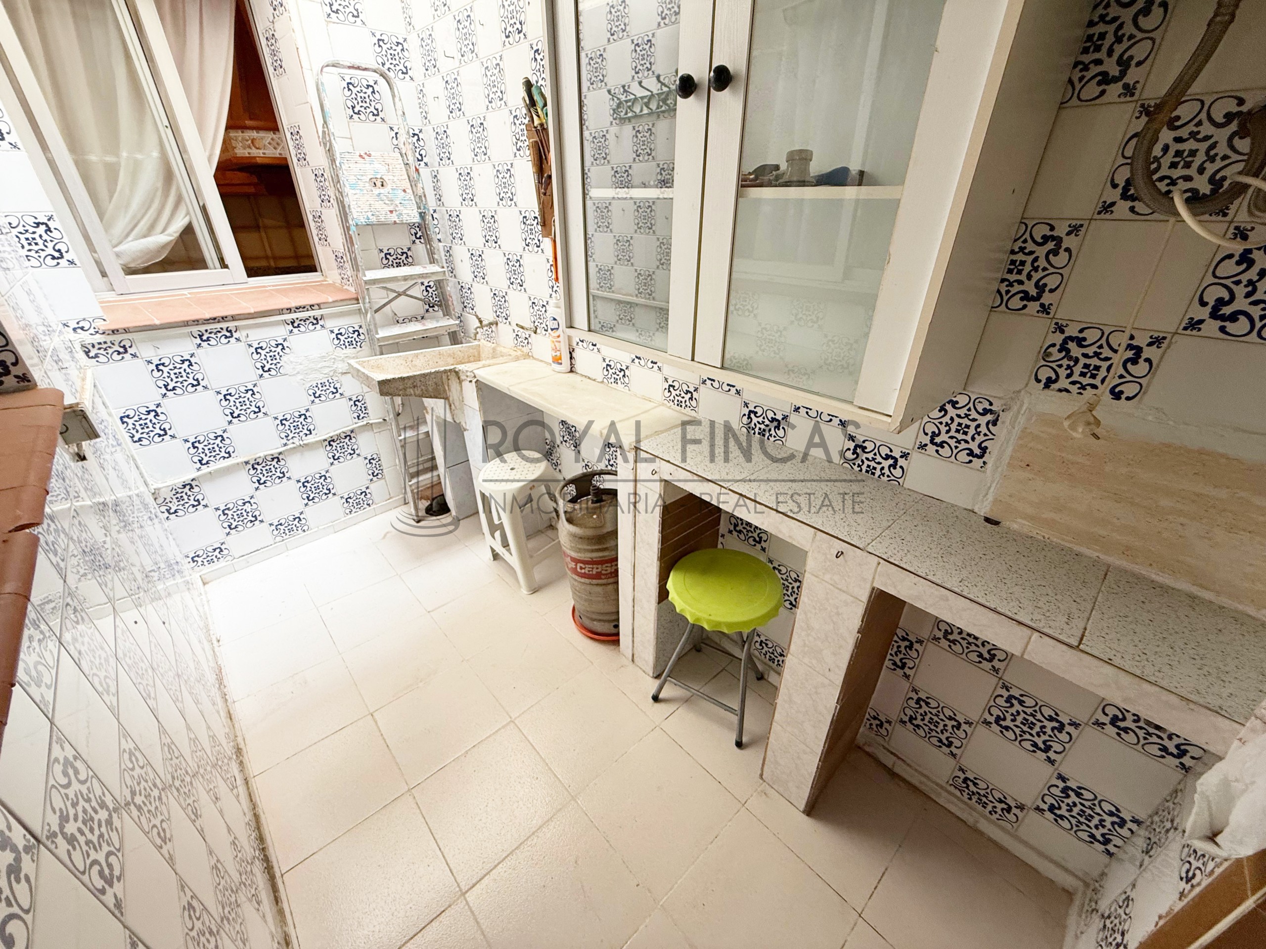Primera planta: amplio salón con salida a terraza soleada, un baño completo, lavadero/trastero y una cocina independiente.