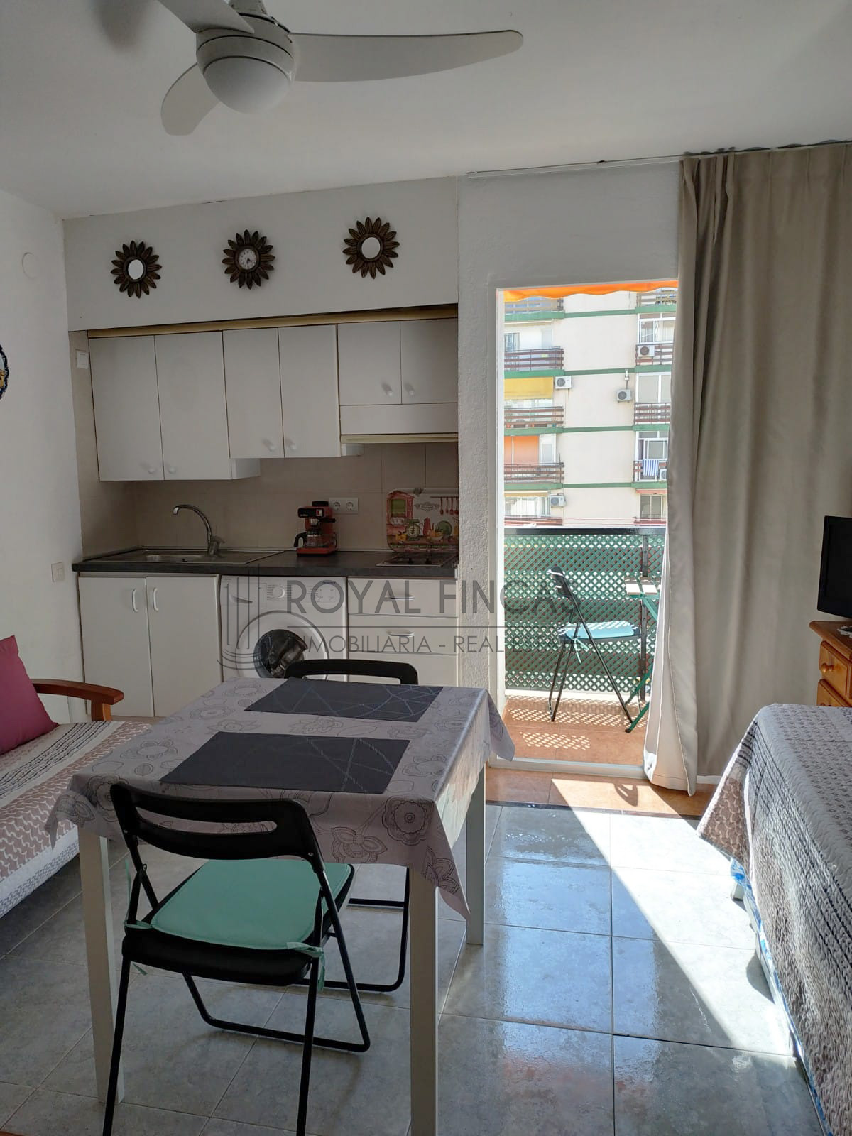 El estudio se encuentra dentro de un edificio con zonas comunes y piscina, perfecto para disfrutar del clima de la Costa del Sol durante todo el año. Su ubicación permite acceder fácilmente a supermercados, restaurantes, transporte público y zonas de ocio.