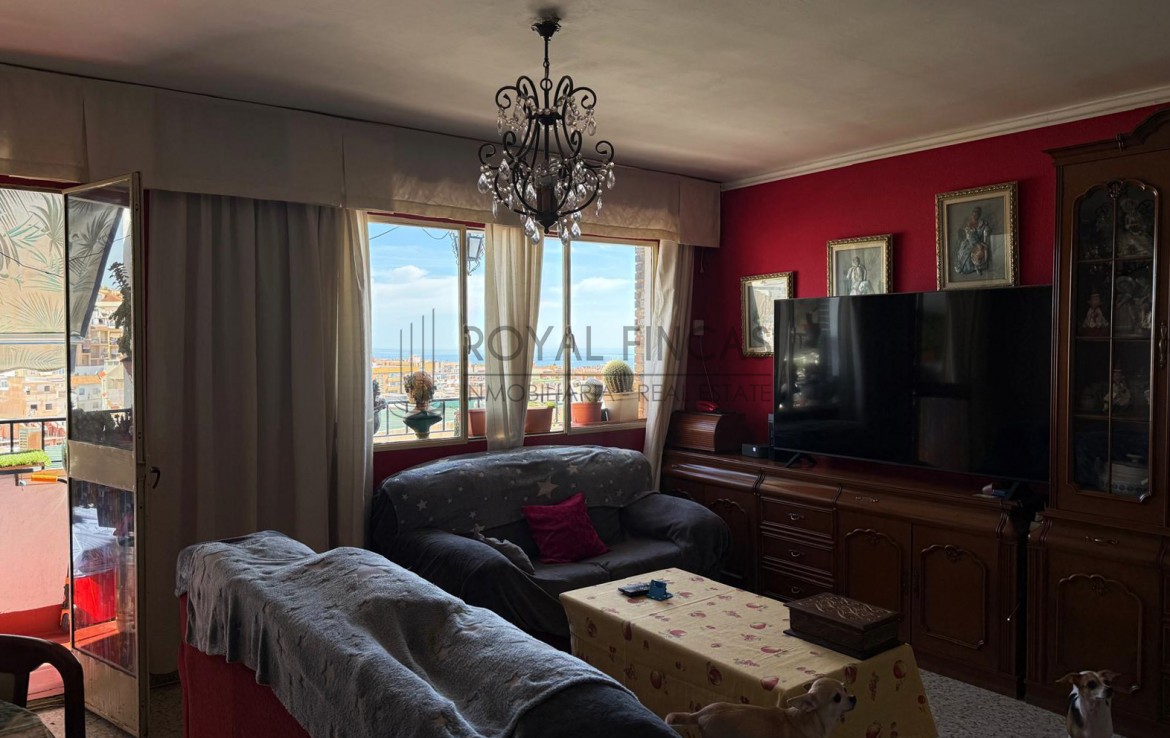 Amplio piso con orientación sureste y espectaculares vistas al mar y a la ciudad. La vivienda cuenta con tres dormitorios, un baño, gran salón comedor con salida a terraza, y cocina independiente con lavadero.