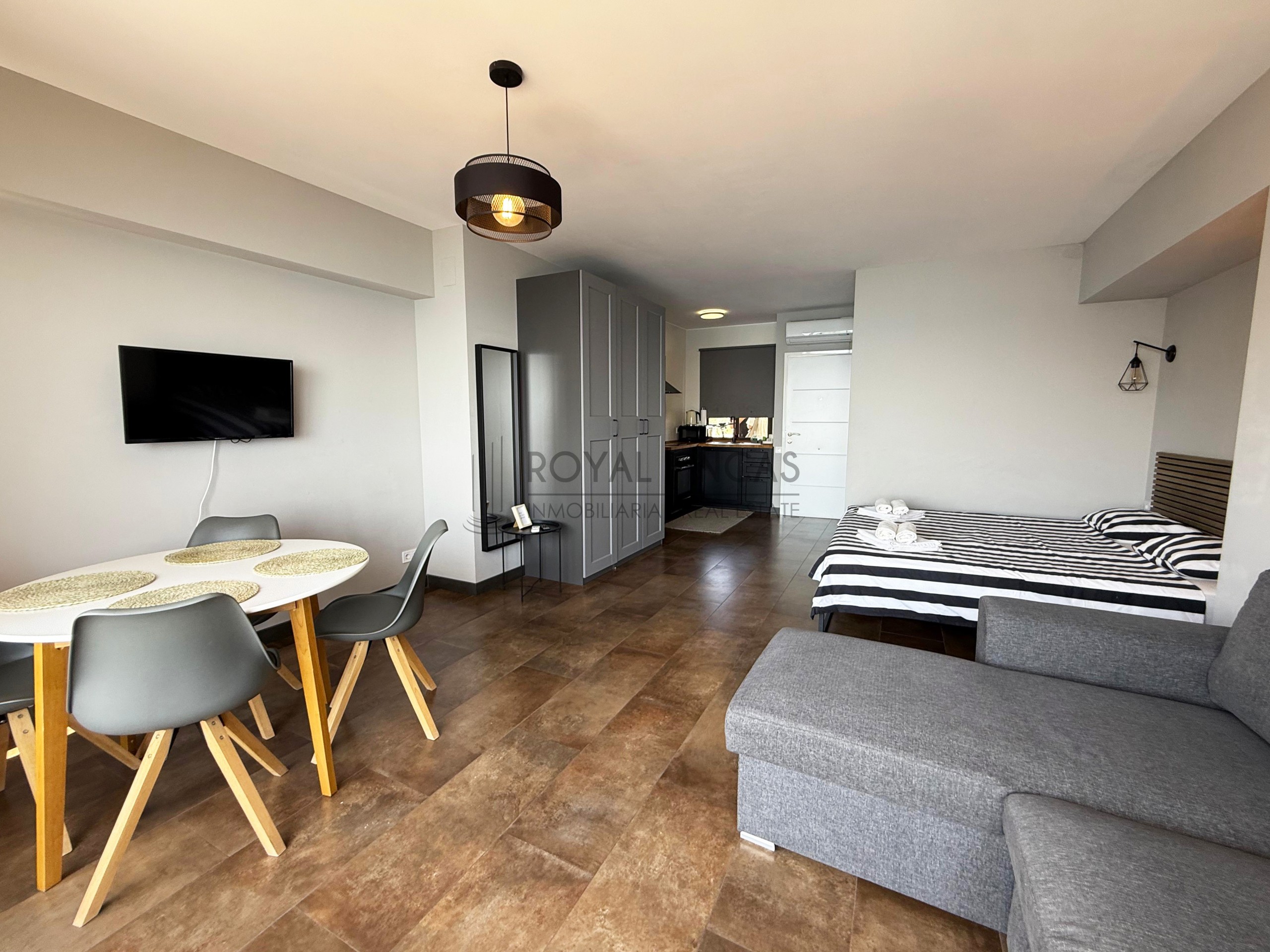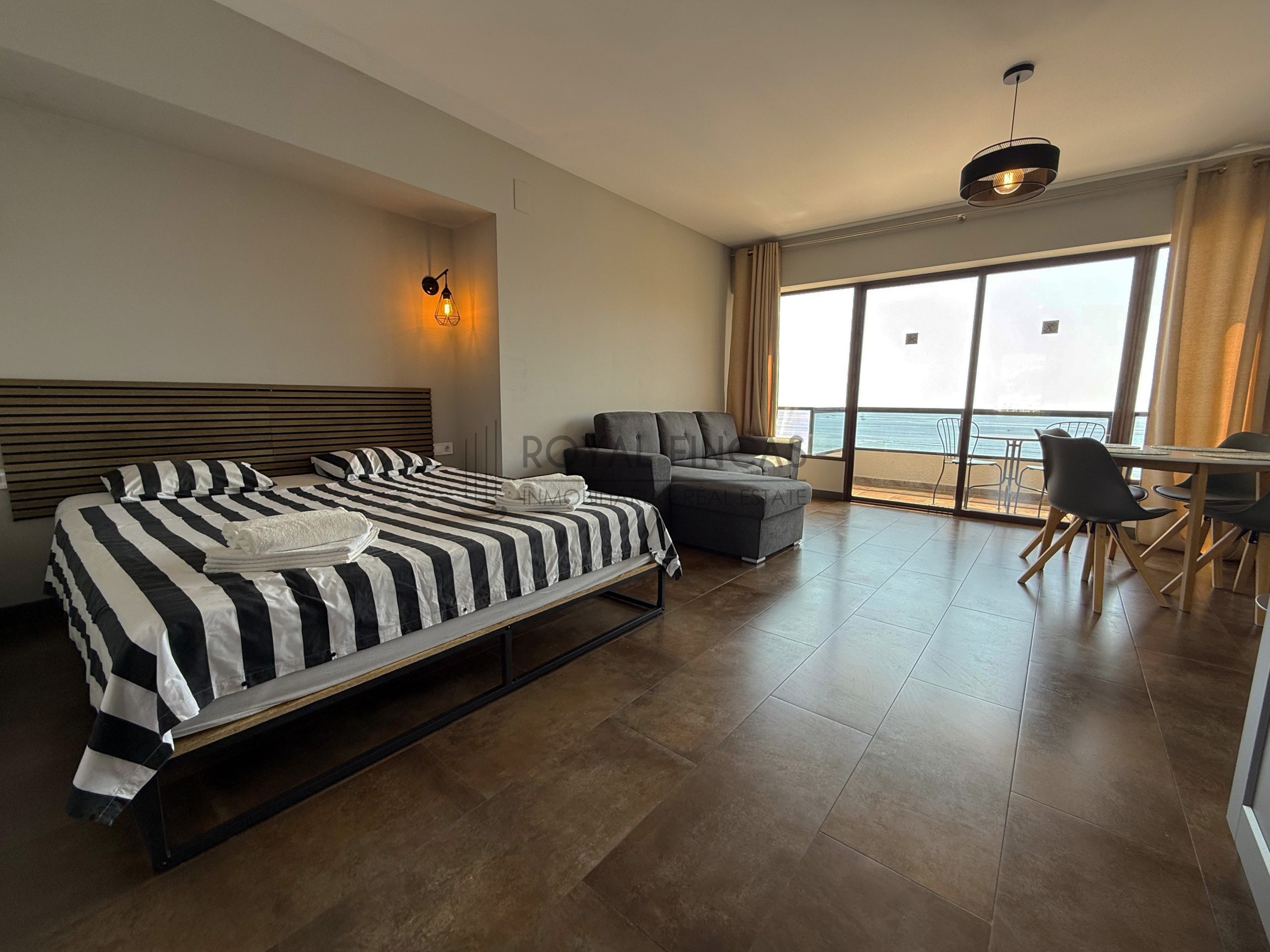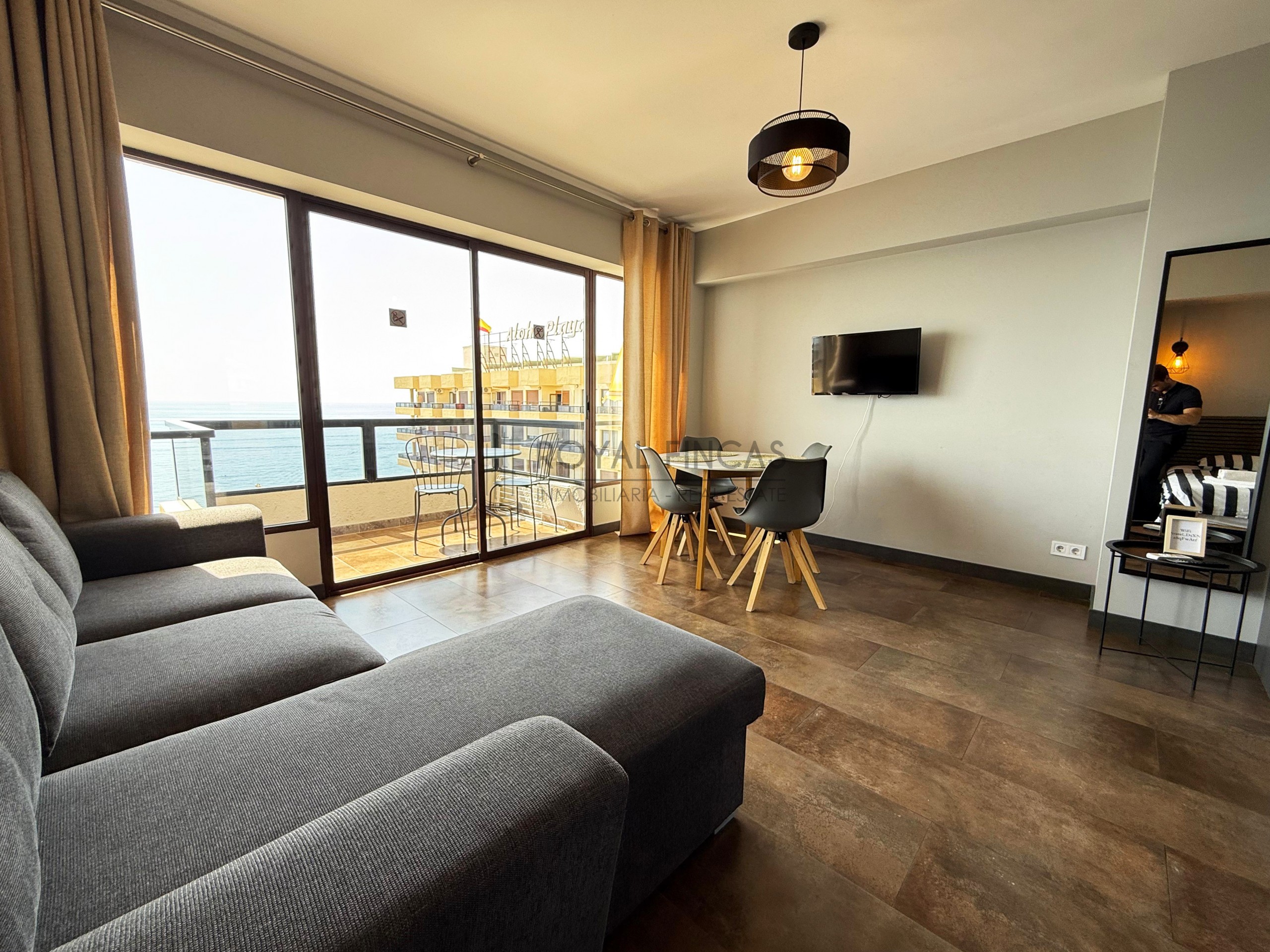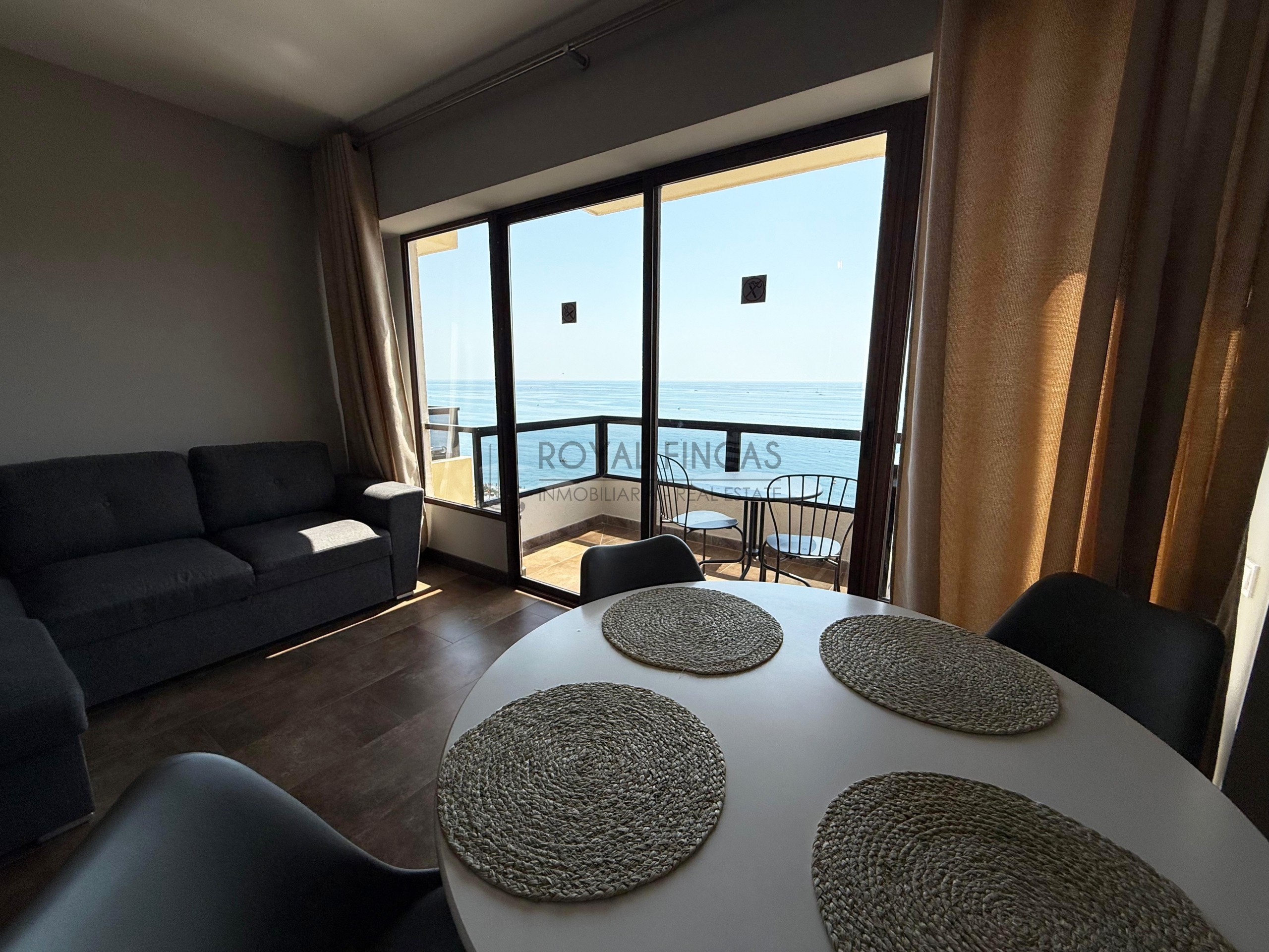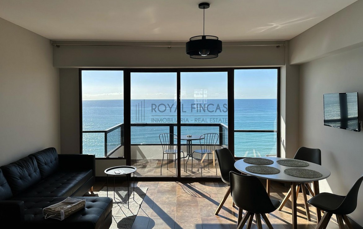 Se vende apartamento de 40 m² situado en la última planta del complejo Aloha Playa, en primera línea de playa. Tiene una cocina americana, baño, terraza privada con vistas abiertas al mar y a la ciudad, y aire acondicionado. Todo reformado recientemente, con acabados de calidad, muebles nuevos y electrodomésticos incluidos.