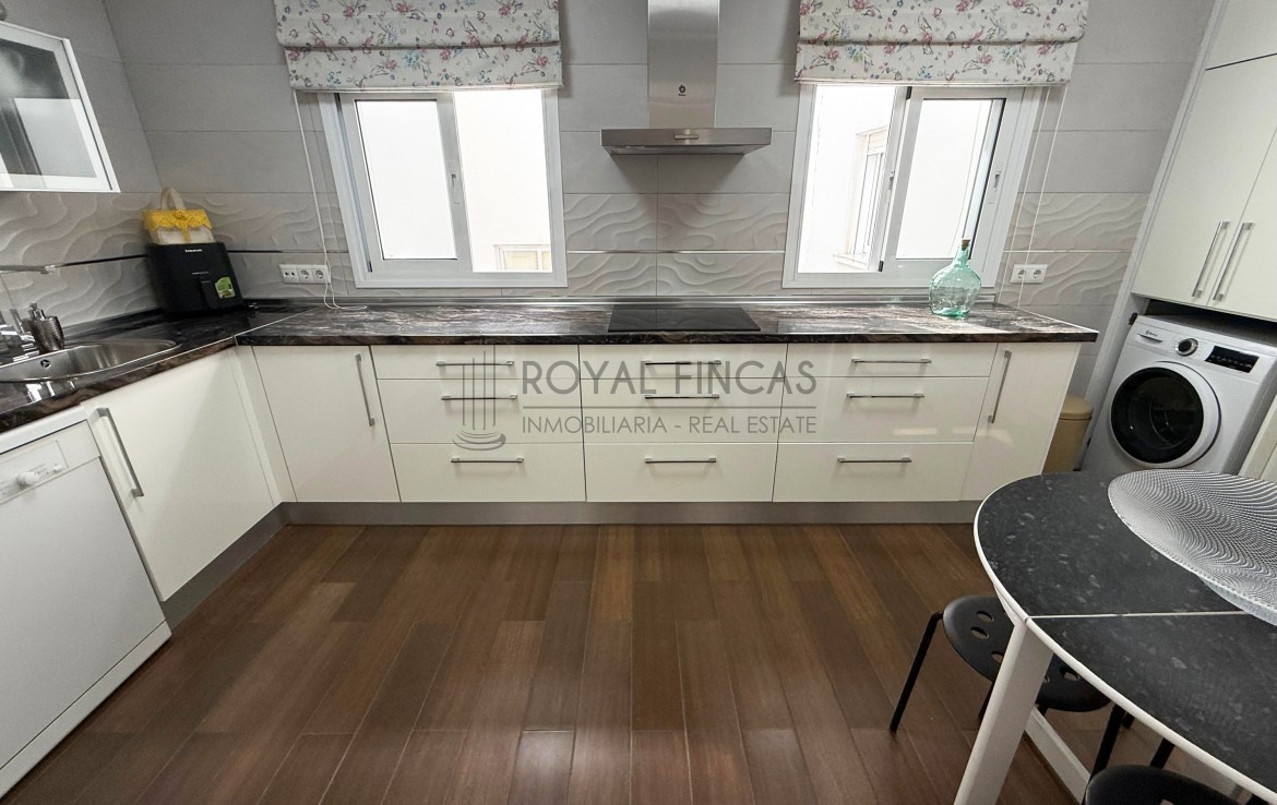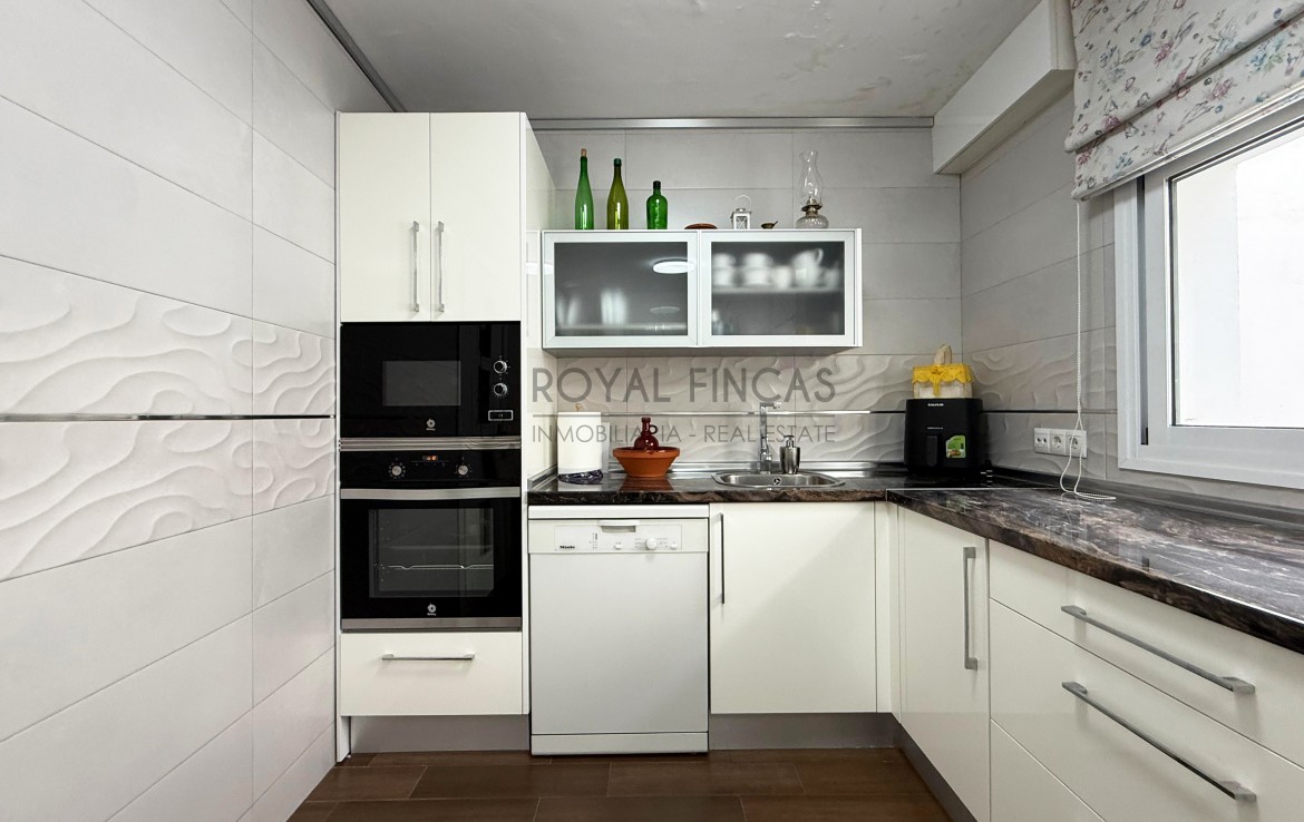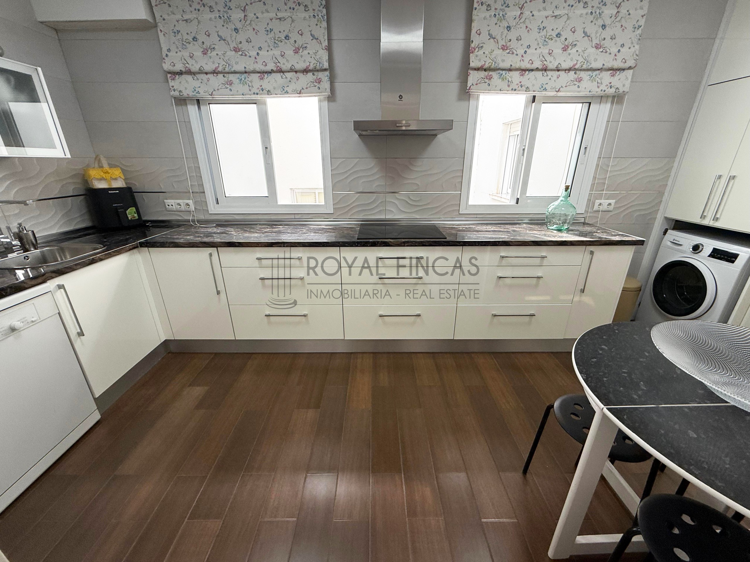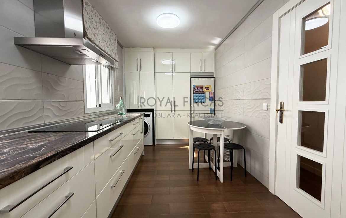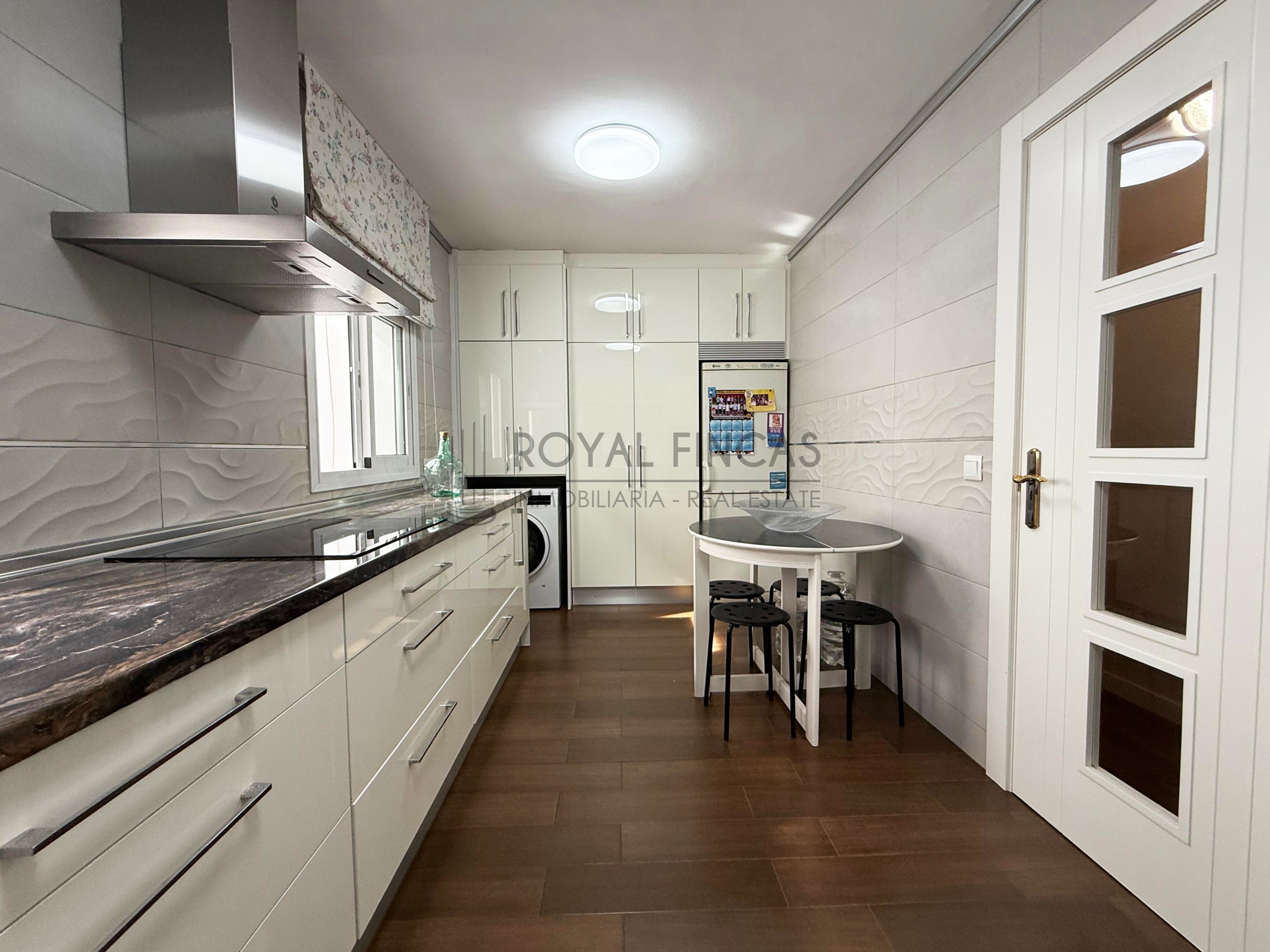 El piso, de 89 m², fue completamente reformado hace 4 años con acabados de lujo: suelos de madera de alta calidad, paredes alisadas, ventanas climalit y renovación total de electricidad y fontanería. Originalmente tenía 3 habitaciones, pero se amplió la cocina incorporando una de ellas, creando un espacio moderno y funcional.